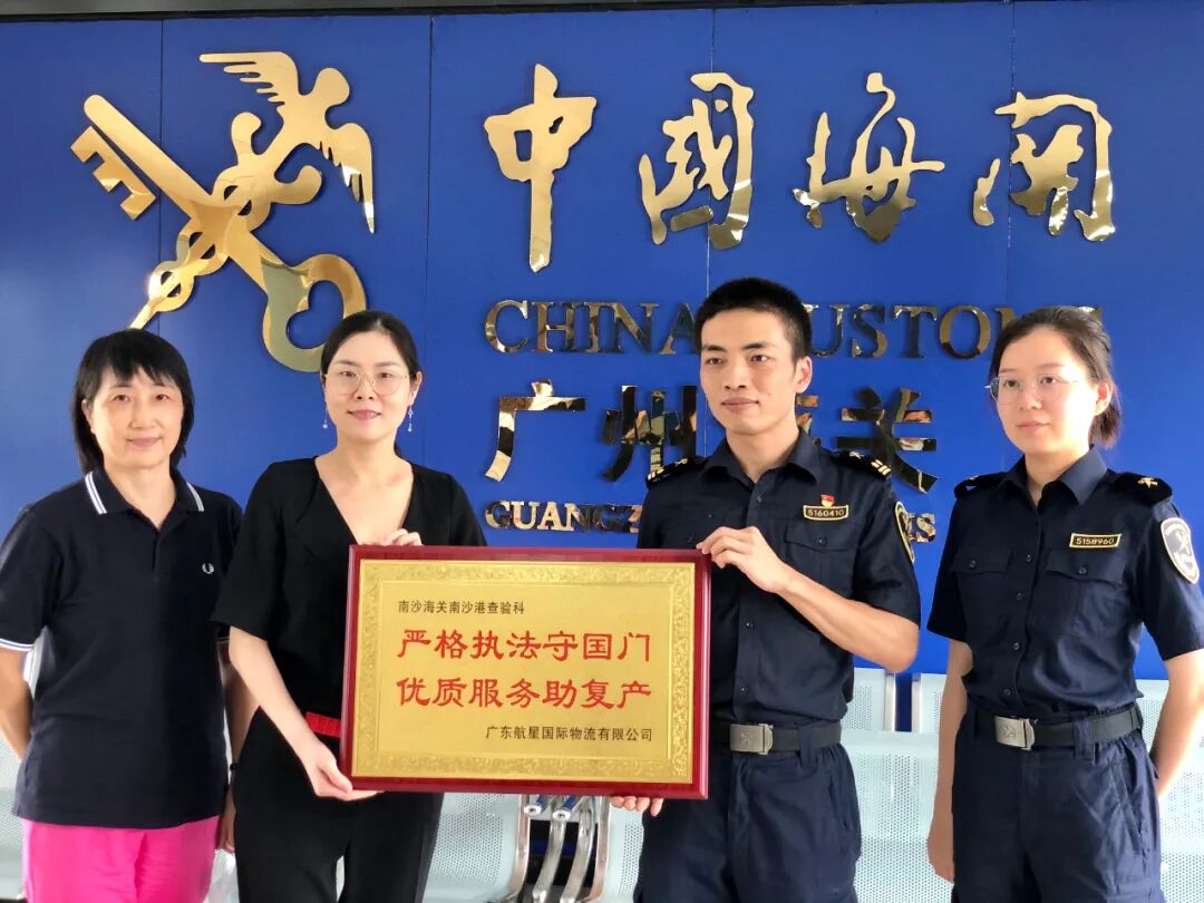 南沙港集團(tuán)領(lǐng)導(dǎo)對客戶高度負(fù)責(zé)的態(tài)度,雷厲風(fēng)行的作風(fēng)真的是很給力,把不可能變?yōu)榭赡?,真正做到急客戶之所急,切客戶之所切。我們?yōu)槟仙掣鬯泄ぷ魅藛T點(diǎn)贊,為這樣優(yōu)質(zhì)、高效、專業(yè)的服務(wù)表示敬意和由衷的感謝。5月28日,我司黃航敏總經(jīng)理帶著感激之心,為南沙港海關(guān)檢驗(yàn)科各位領(lǐng)導(dǎo)送去“嚴(yán)格執(zhí)法守國門 優(yōu)質(zhì)服務(wù)助復(fù)產(chǎn)”的牌匾,以表心意。